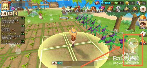 进入游戏界面后,走到【农田处】,并点击右下角的【锄头】进入。如下图所示