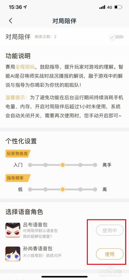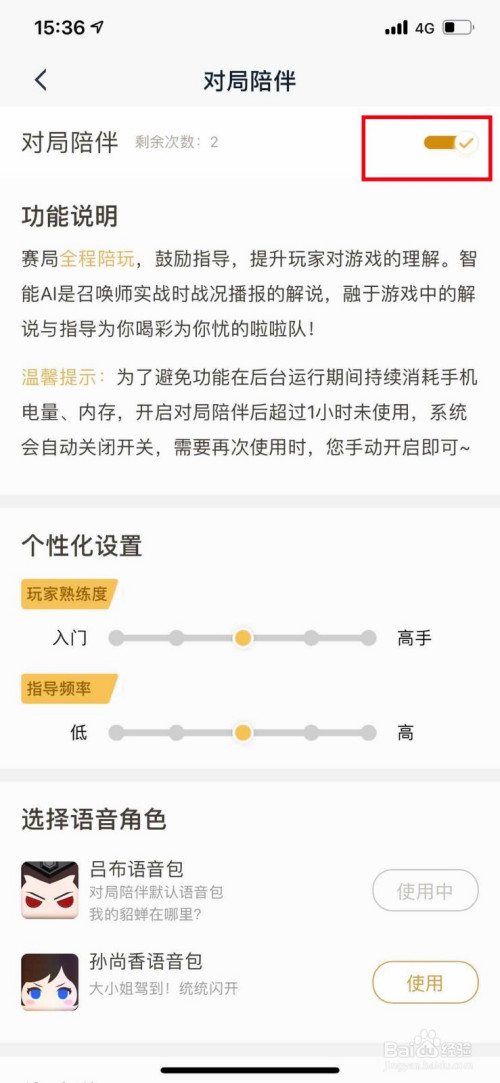 如图,在对局陪同的本家儿页面中我们点击开启对局陪同功能。