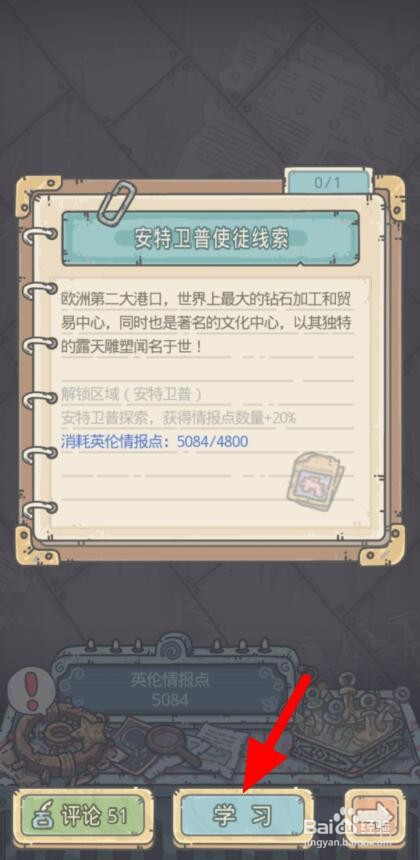 进修上述谍报,就可以解锁新区域【安特卫普】。