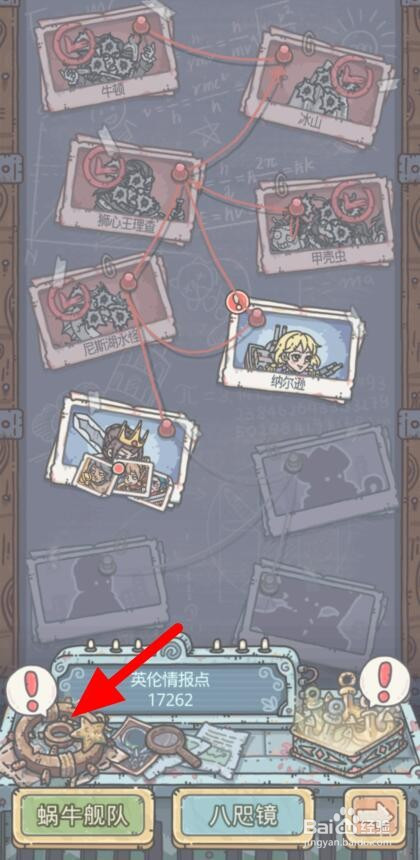 进入英伦摸索谍报页面,点击页面左下角的【船舵】。