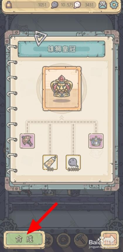 完当作装备的合当作,就可以获得装备【雄狮皇冠】。