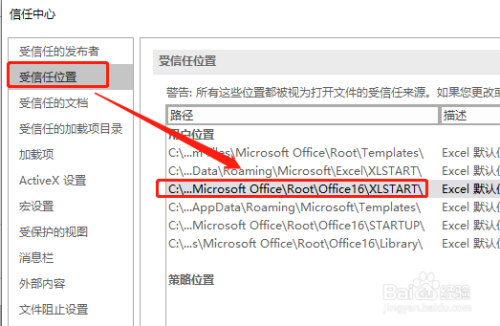 找到“受信赖位置”选项,并选顶用户位置。如图: