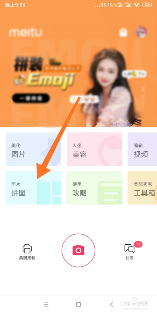 打开美图秀秀选择【拼图】按钮。
