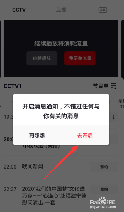 点击去开启,期待晚上8点看直播即可。