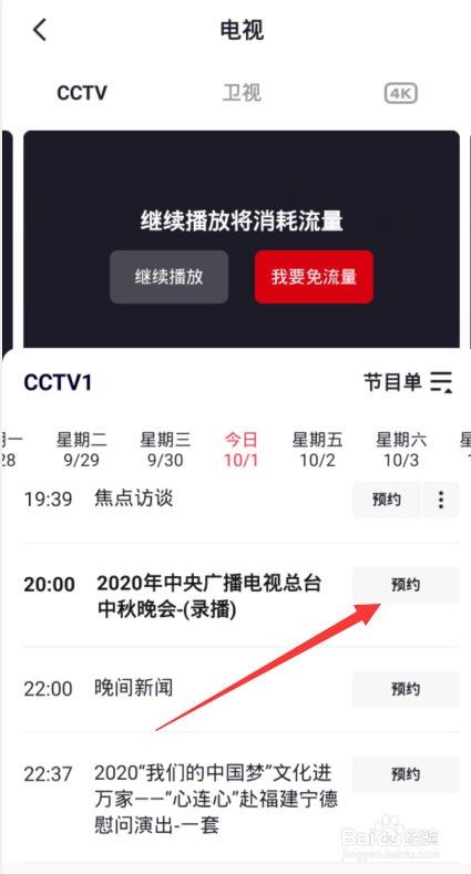 点击【2020央视中秋晚会】右侧的预约选项。