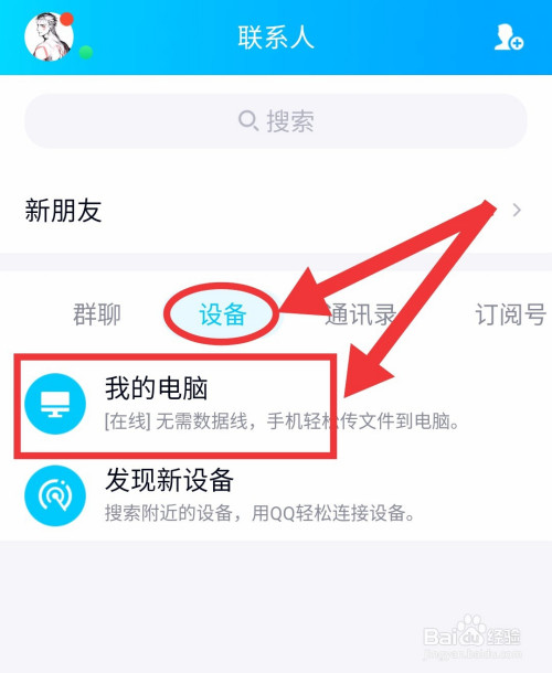 在电脑打开QQ——设备——点击“我的电脑”