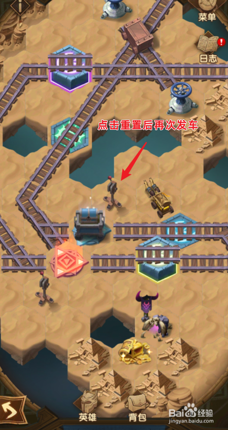 之后,将马车移动至轨道内,再次点击发车的图标,将红色货色重置至肇端点。