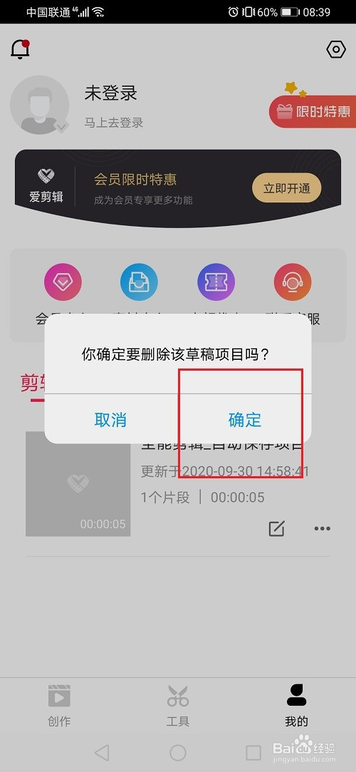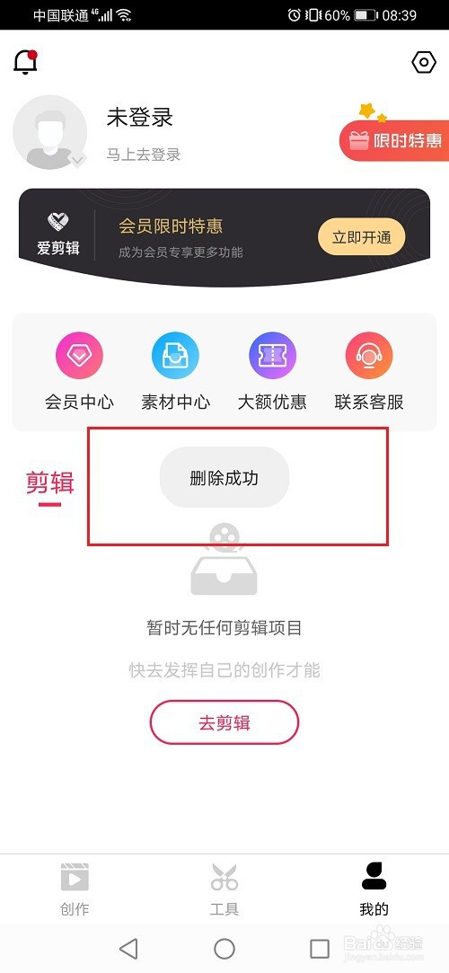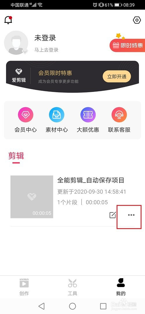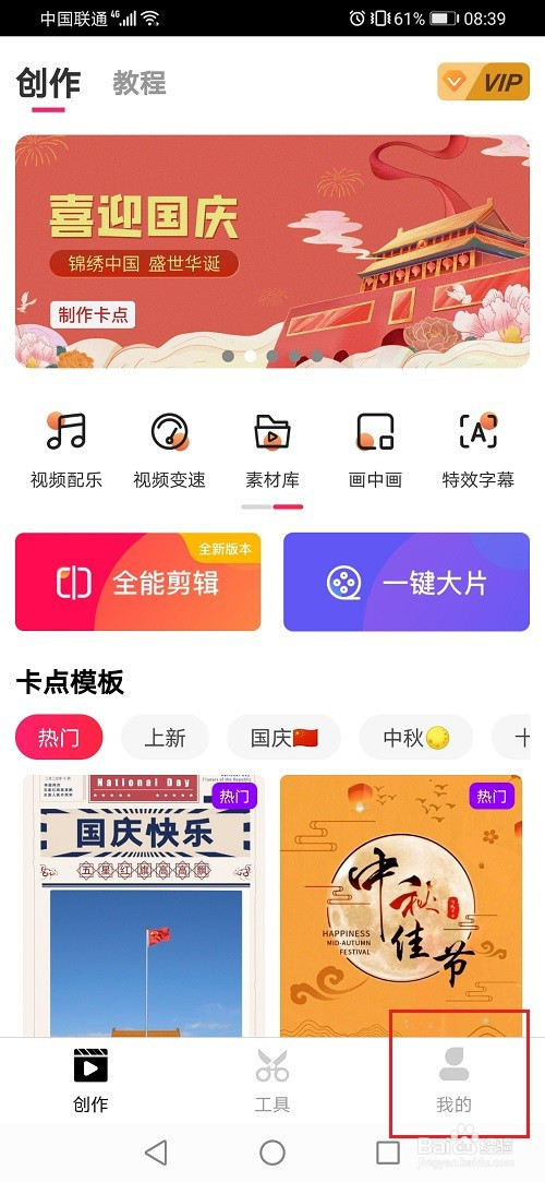 第一步进去爱剪辑创作界面,点击底部我的