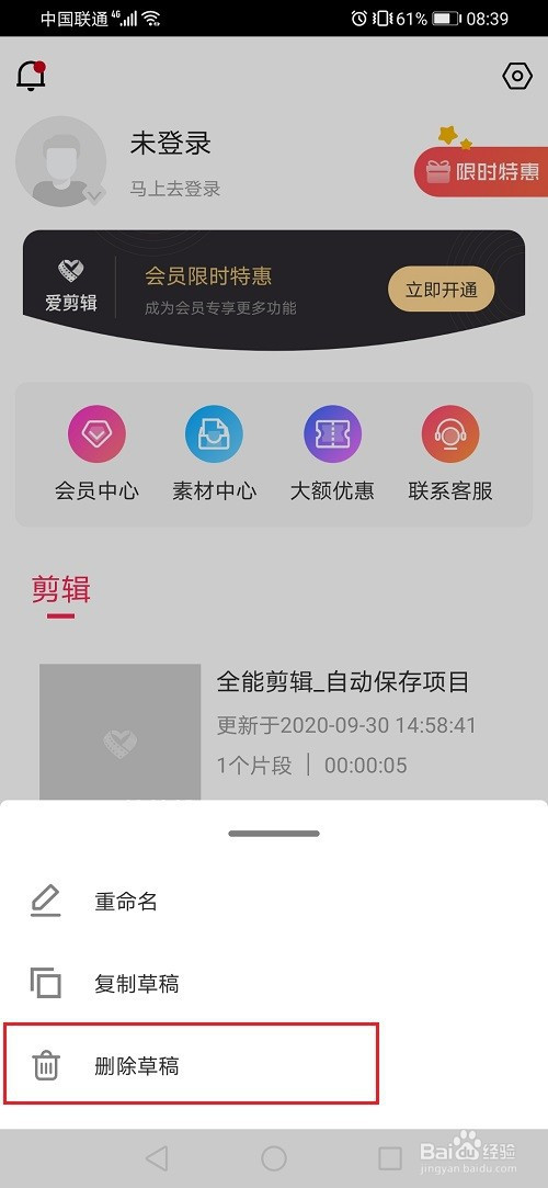 第三步点击三点图标之后,选择删除草稿