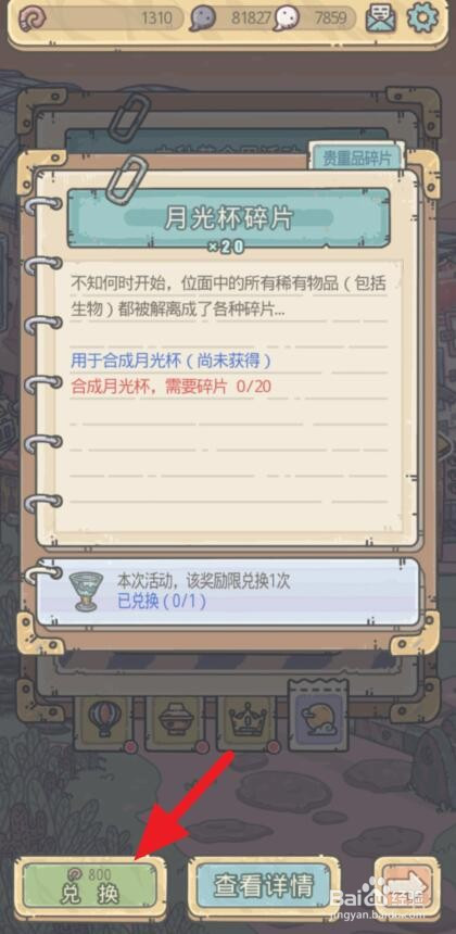点击兑换月光杯碎片并进行合当作,就可以获得珍贵品【月光杯】。