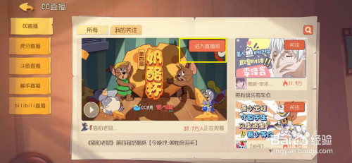 进入到游戏的本家儿页面中,我们点击进入到直播选项。