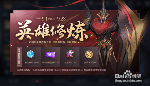 修炼过程中可获得英雄试用资格(全模式可用)、部门皮肤利用资格(直售的史诗(英雄修炼活动开启前3个月内新上架的皮肤除外)及以劣等级皮肤)、满级系统铭文试用(仅修炼英雄可用);修炼达到2000能量可得英雄黑甜乡修炼礼盒。