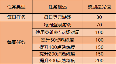活动时代可以经由过程完当作使命获取星光值,进行筑梦完当作修炼,在选择修炼英雄时,活动页面会供给3位常用英雄,呼唤师们也可以在其他(除艾琳、韩信、武则天、嬴政、赵云、不知火舞、橘右京、娜可露露、阿古朵外)英雄中选择1位进行修炼,部门谙练渡过高的英雄,无法介入修炼。