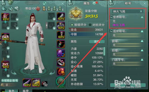 这样子,我们的宿世界称号就装备当作功啦,然后我们就可以兴奋的查看该称号的结果啦~