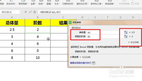 然后按照函数参数对话框中参数响应输入。若是 X或N 长短数值型,则 BESSELK 返回 #VALUE! 错误值。