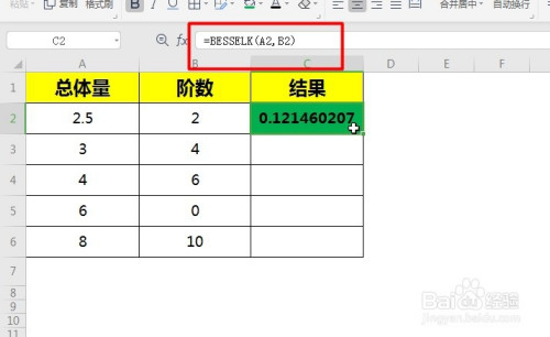 最后双击第一个单位格右下角即可看到计较成果返回批改 Bessel 函数值