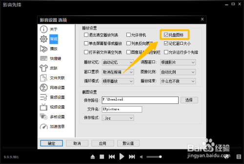 去失落“托盘图标”选项的“√”状况后,点击下方的“确定”按钮,这样就当作功禁止影音前锋显示托盘图标。