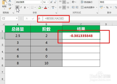 最后双击单位格右下角就可以在成果单位格返回 Bessel 函数值