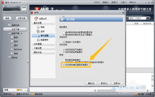 在“事务提醒”列表项中,打消勾选“许可快车弹出保举资本提醒”选项的勾选开关。
