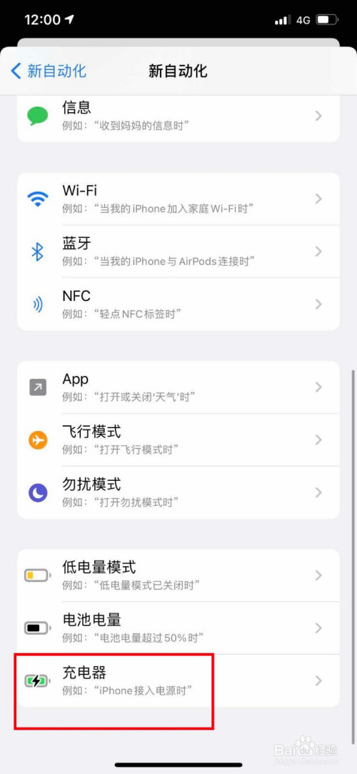 在添加主动化的本家儿页面中,我们下滑到底部,点击进入充电器。