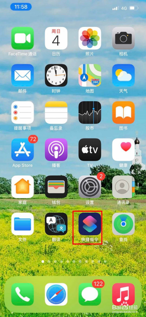 我们进入到手机的本家儿页面中,然后点击进入快捷指令选项。
