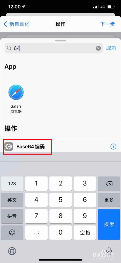 然后在搜索框中输入64。点击选中底部呈现的Base64编码选项。