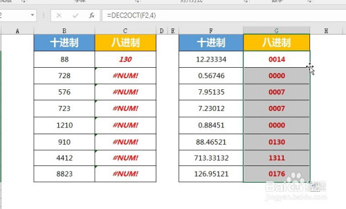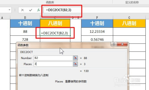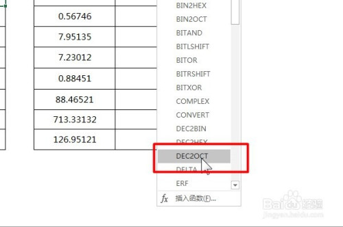 在插入函数对话框中找到“DEC2OCT”函数,点击确定