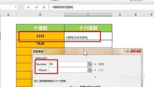 在插入函数对话框中的选择函数“ DEC2HEX”,若是参数为非数值型,函数 将返回错误值,点击确定