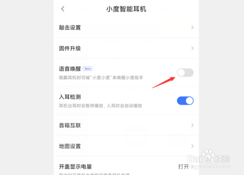 4.进入小度智能耳机后点击语音叫醒后面的按钮。