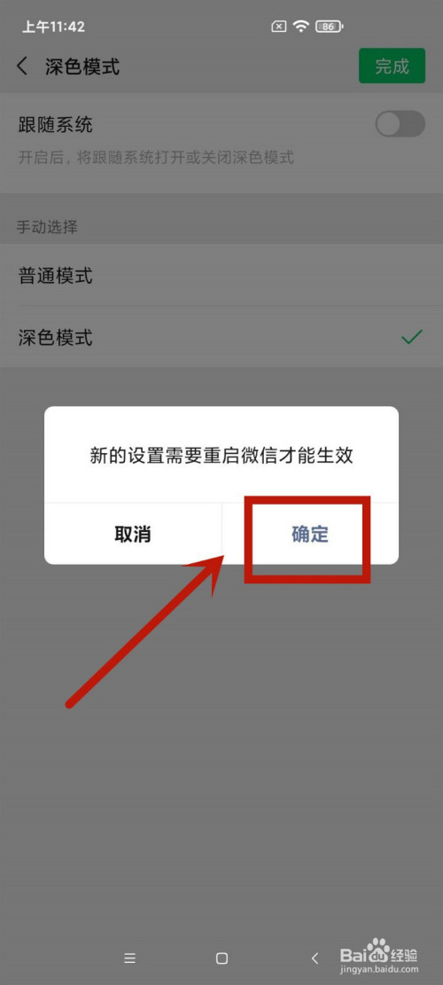 4.在小框中点击确定,随即就可发现本身的手机界面进入深色模式。