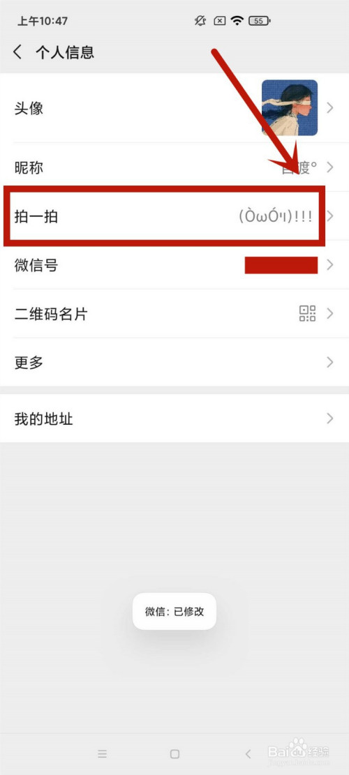 随后就可发现拍一拍后显示着本身设置的后缀内容,当老友拍一拍我们头像时,该内容就会呈现。