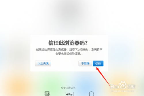 系统提醒是否信赖该浏览器登录,我们点击“信赖”