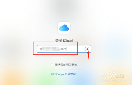 打开电脑浏览器,输入iPhone云地址“https://www.icloud.com/”,进入到iCloud登录界面,输入Apple ID,然后点击旁边的小箭头