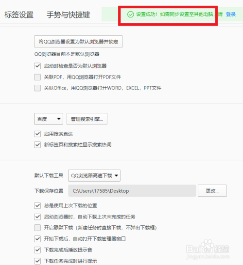 选中后返回到常规设置页面,当顶部呈现设置当作功字样即可。