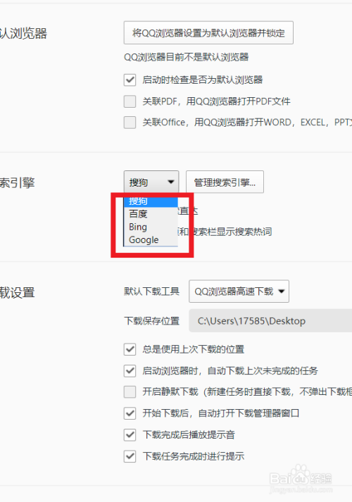 如图,鄙人拉选项中选择本身需要的搜刮引擎。