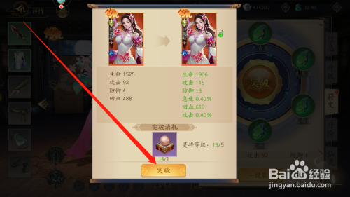 可以看到冲破增添的属性,点击冲破按钮,就可以冲破灵将了