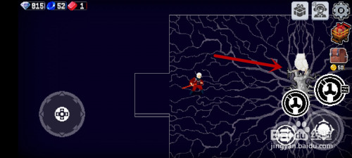 操控银藏走到最右侧,装备好【秘剑·流星】这个技术,然后对着墙壁利用技术。