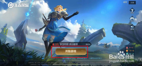 进入到王者荣耀的登录界面,然后点击起头游戏选项。