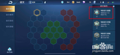 选中我们需要的铭文,选中后就会主动装备到该空白处所。其他铭文也是如斯。