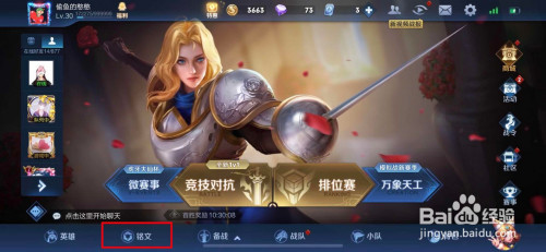进入到游戏的本家儿页面后,我们点击进入左下角的铭文选项。