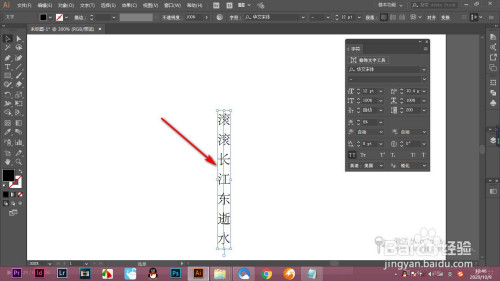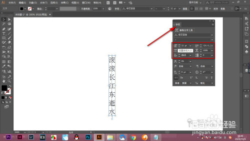 4.并且我们可以经由过程快捷键ctrl加T打开字符面板,调节字体的大小以及它的行间距和字间距。