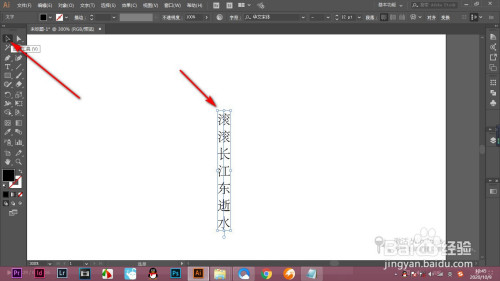 3.若是是缩放文字的话,我们可以鼠标点击定界框的锚点进行拖拽可以实现缩放,快捷键是ctrl加shift加句号键是放大,逗号是缩小。
