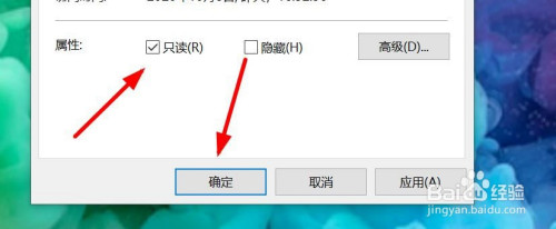 将“只读”勾选。点击确定。
