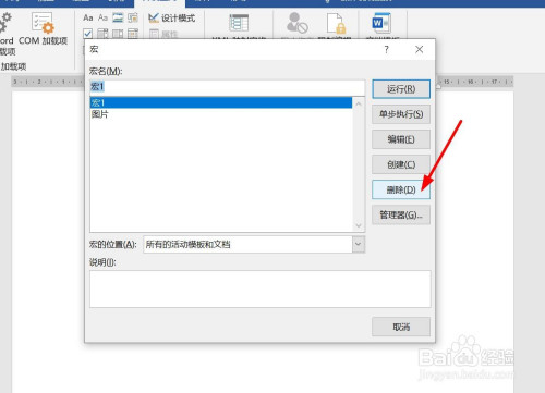 选择需要删除的宏。