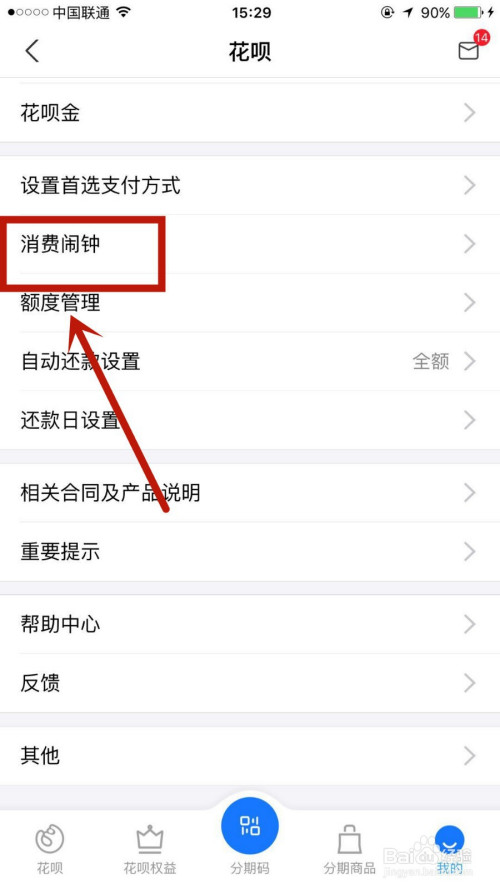 找到页面的消费闹钟选项并点击进入。