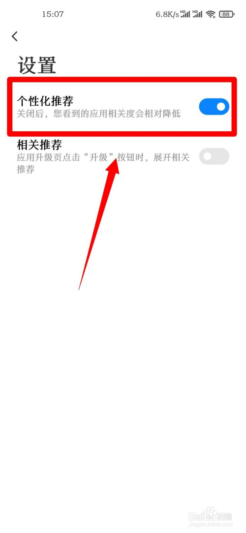 最后在保举设置界面点击最上方的“个性化保举”就可以封闭这个功能了。