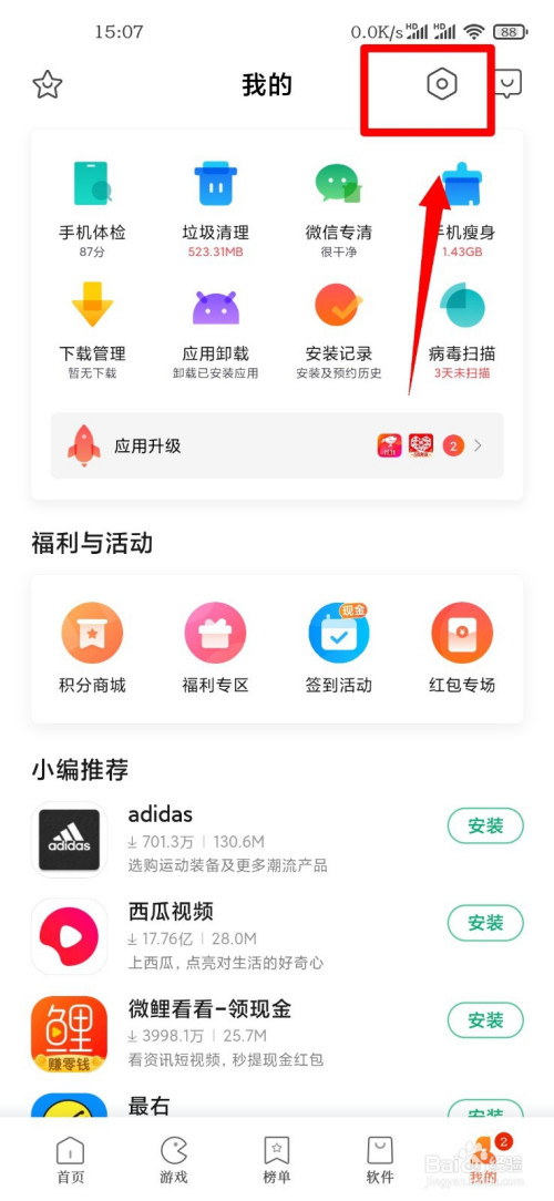 接着在小米应用商铺界面中点击右下方的“我的”进入到小我设置界面中。
