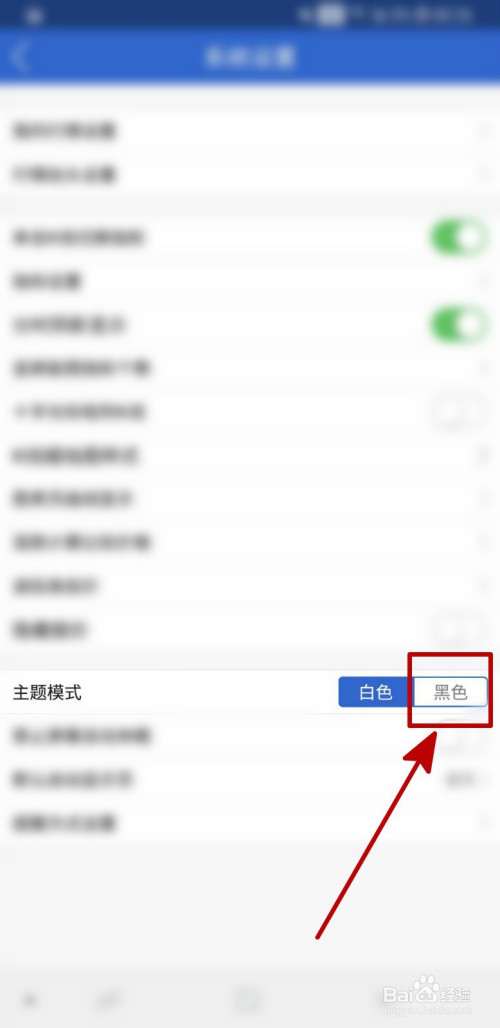 2、在设置页面,选择黑色本家儿题即可。