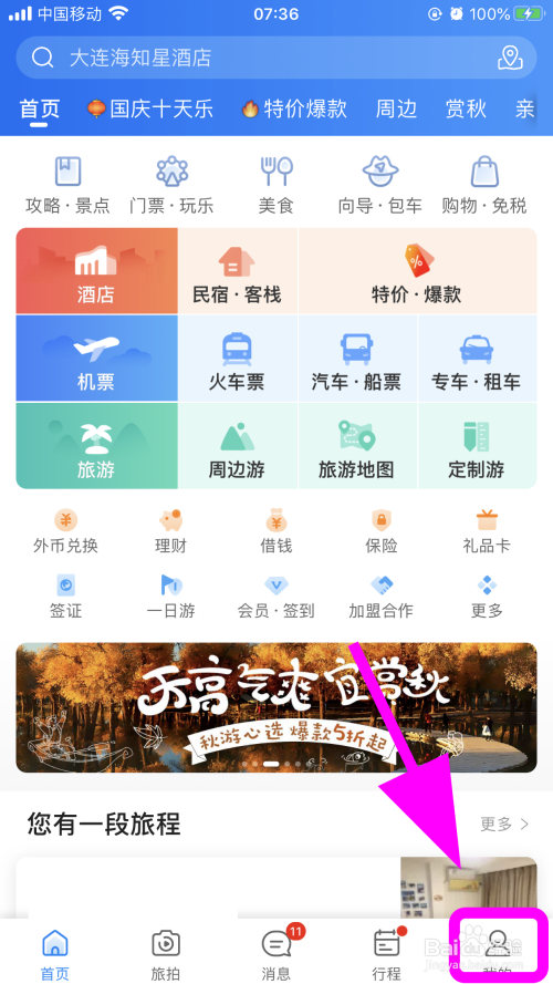 进入携程我的页面,点击右上角的【齿轮】外形;