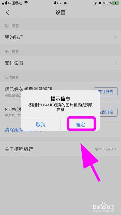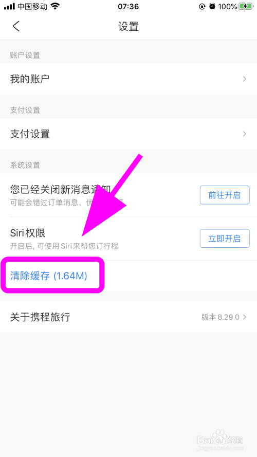 进入携程【设置】页面,点击本页面的【断根缓存】;